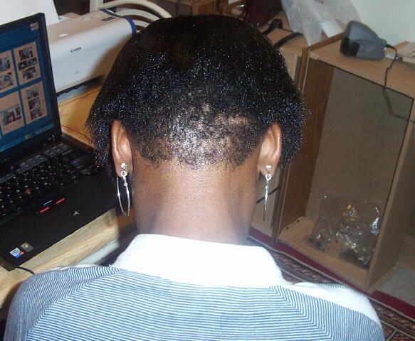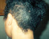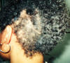 A 34-year-old female has had a history of hair problems and minor skin irritations. She normally would visit a beautician to have her hair processed or managed. Over the last two years continuous use of chemical treatment resulted in severe damage to her hair and scalp. The beautician decided that the she should wear braids for a year using extensions in an effort to allow her hair to recover from chemical treatment and to see if her hair would grow out. After the hair was braided Xcel Nutraceuticals HGS was applied routinely to her scalp and hair daily. After six months using Xcel Nutraceuticals HGS her hair was growing so rapidly that the braids and old perm were noticeably removed from her new growth. The woman decided to take the braids out and to remove the old damaged hair ends. The pictures illustrate the condition of her hair after 6 months Xcel HGS.